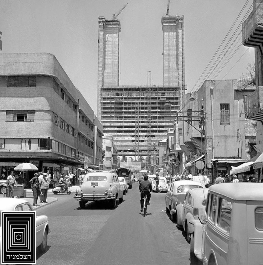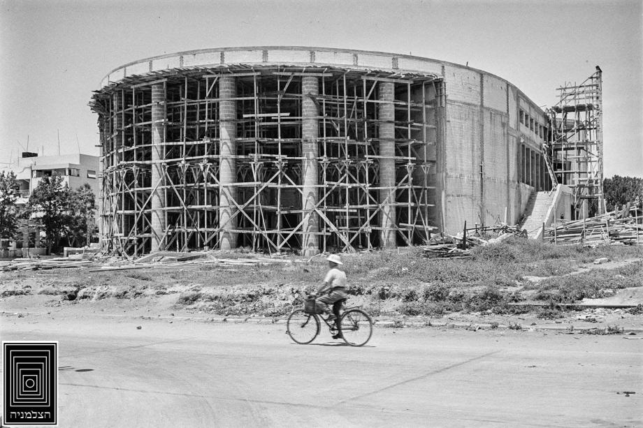 תמונה של תאטרון הבימה בזמן הבנייה שלו.